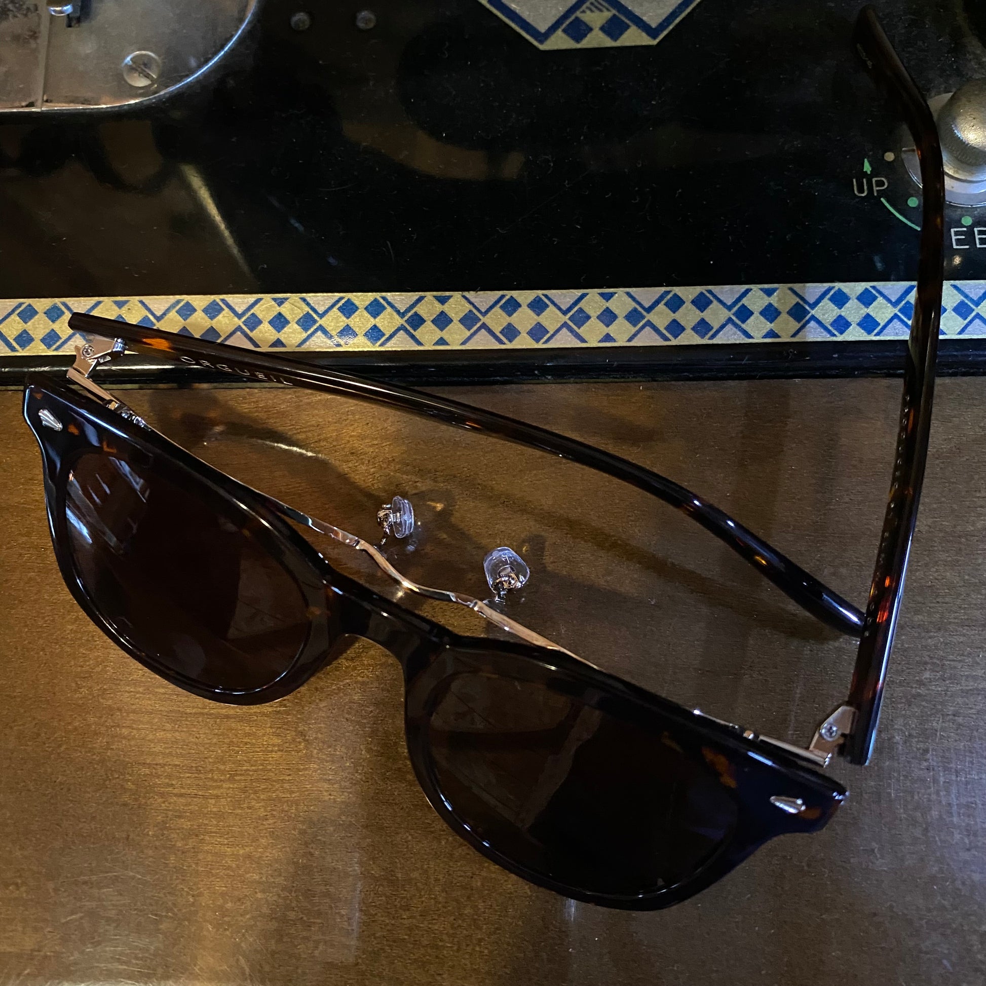 レンズをリム(フレーム)ごと上向きに上がる単式で、メガネをかけたまま裸眼にすることが可能です。レンズは度なしですが、交換が可能な眼鏡屋さんで度入りに交換も可能です。