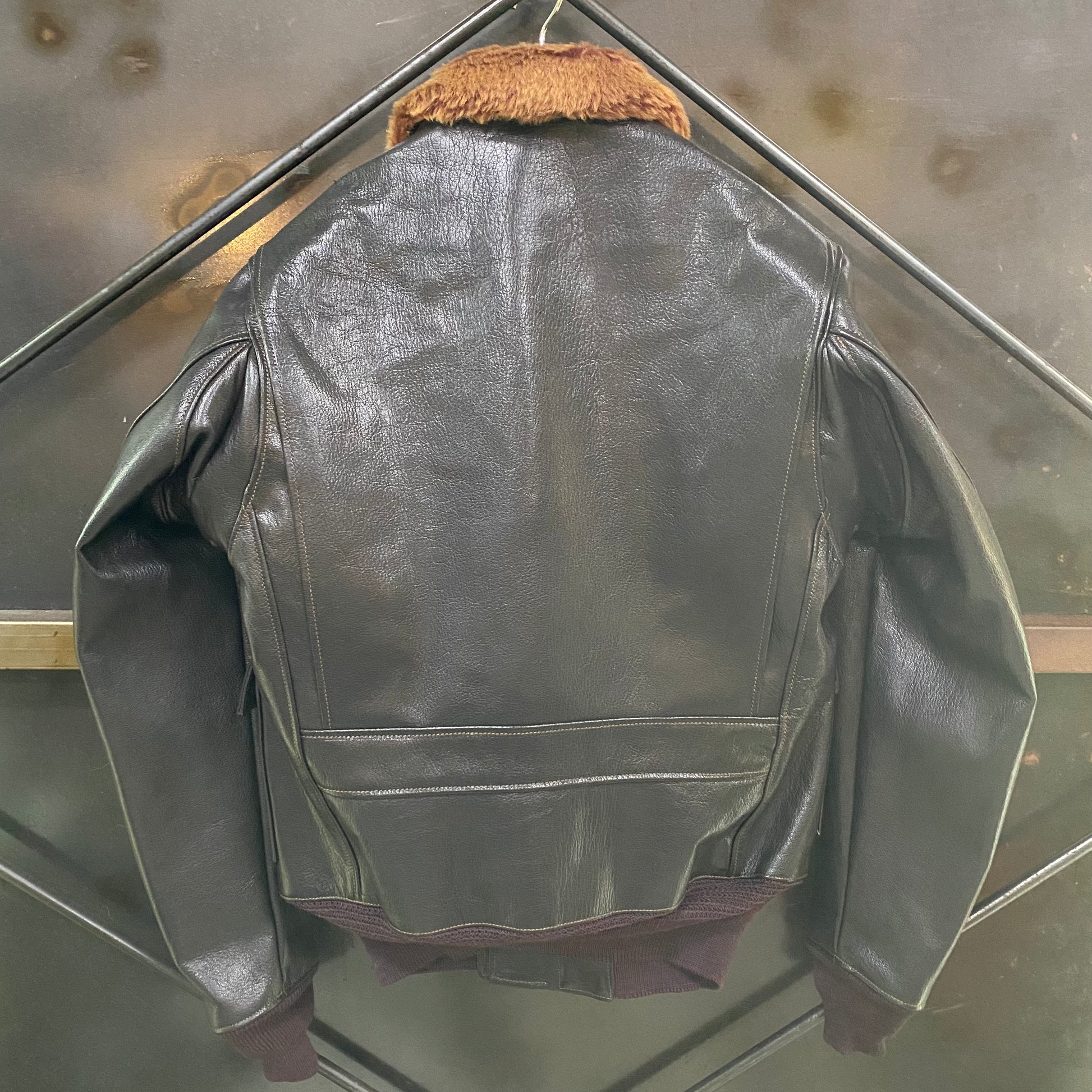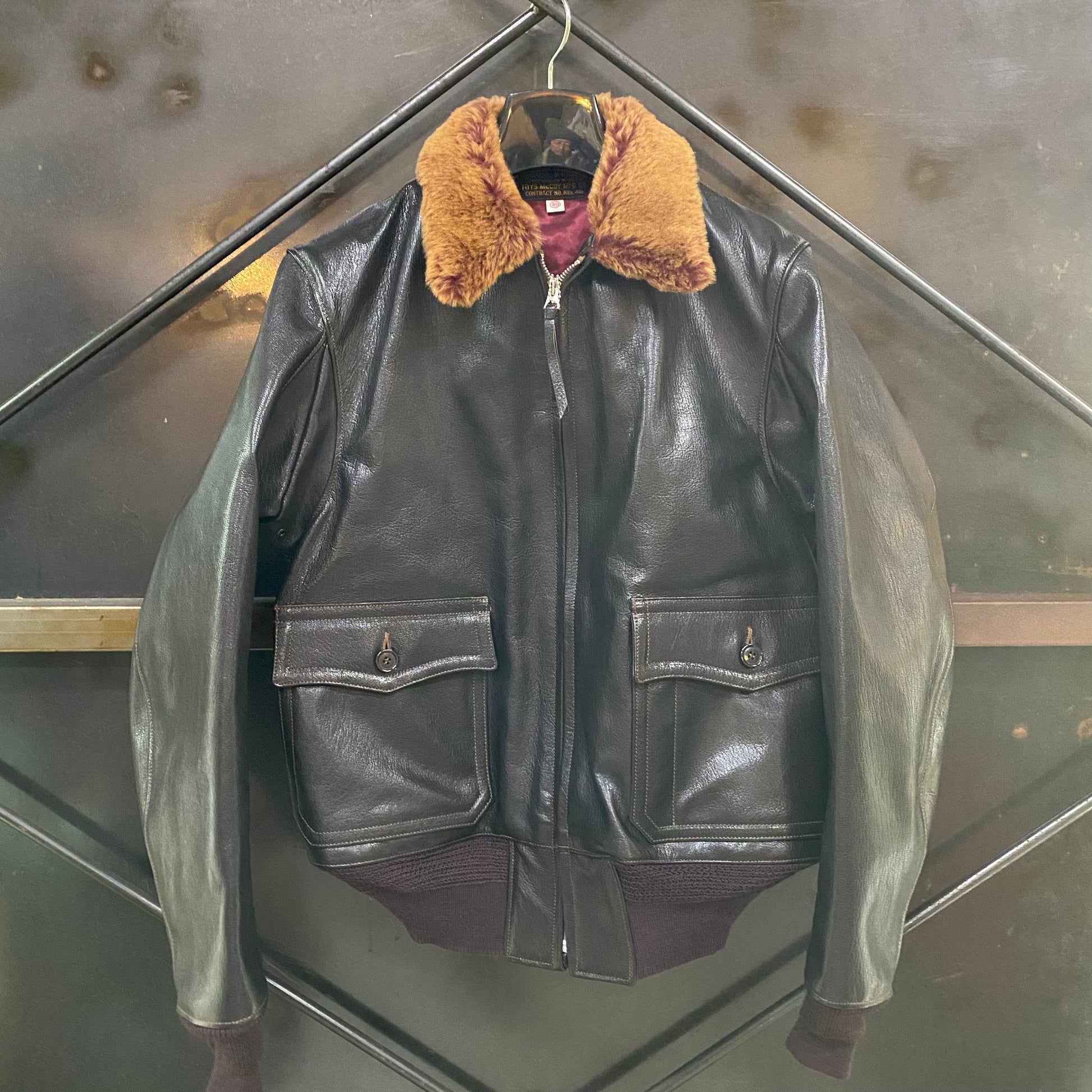 前回のリリースから15年ぶりに復活を果たしたM-422A。非常に濃いマホガニーブラウンに染められたゴートスキンと真紅のライニング、そしてブラウンのムートンカラーのカラーコンビネーションは同飛行服の最たる魅力である。1940年代初頭にほぼ完成の域に達したこの1着が、後にG-1という名称を与えられ、現在に至るまで米海軍に採用されていることは、あまりにも有名だ。