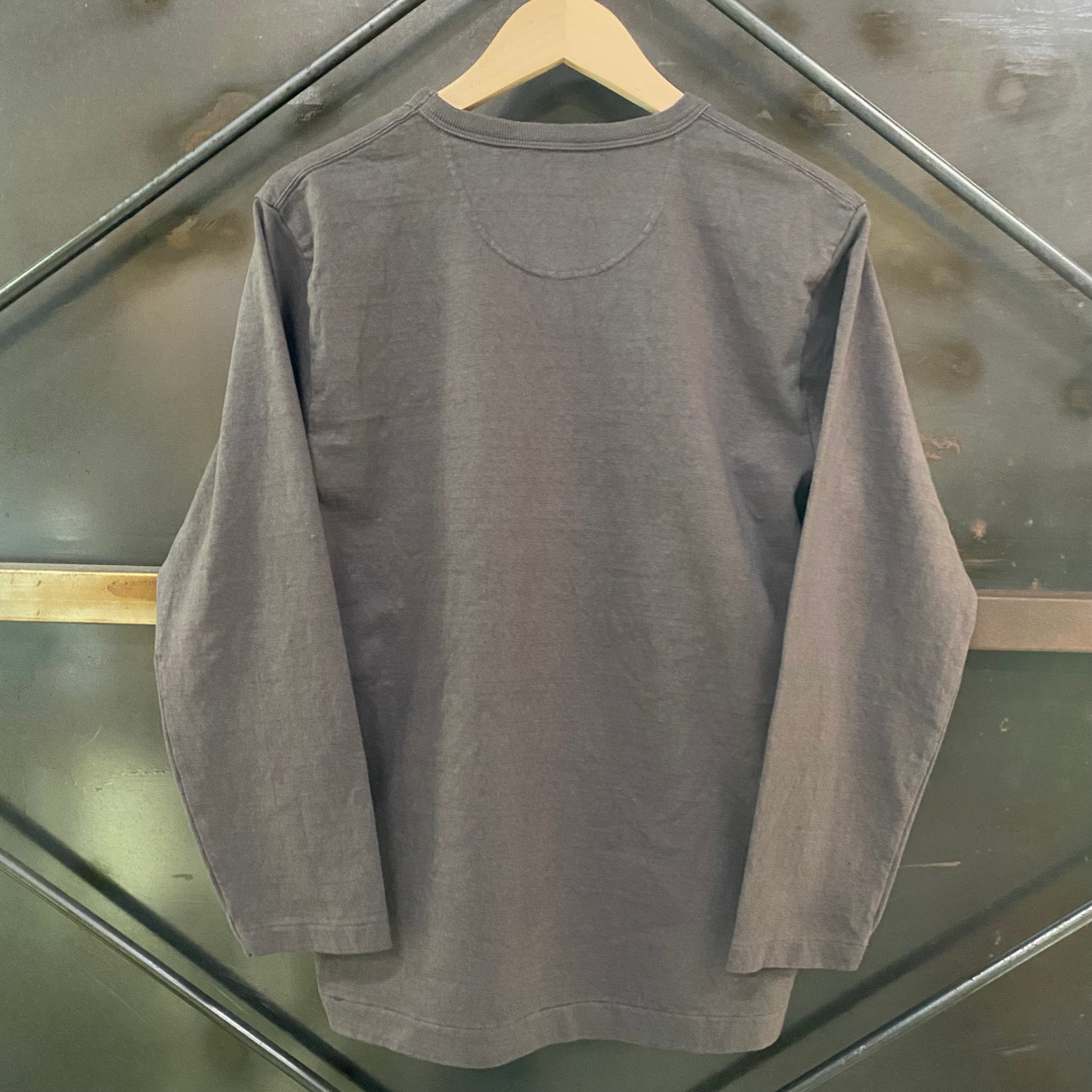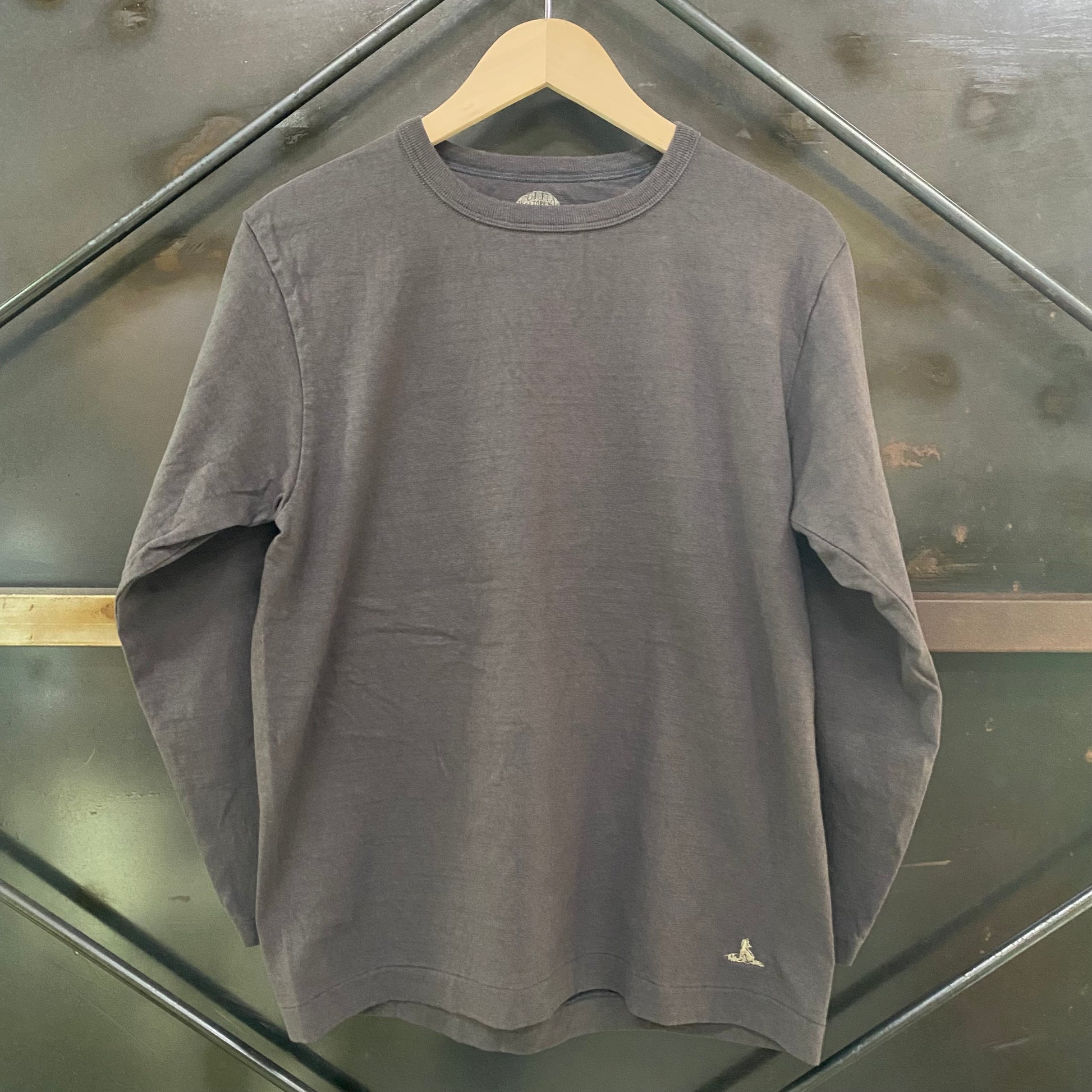 上質な超長綿に落ち綿をブレンドした16/-リサイクルコットン天竺の丸胴ボディを使用。シンプルでもしっかりと存在感のある9分袖Tシャツです。程よいボリュームの丸胴ボディは、スラブ糸特有のムラ感によって、柔らかで肌触り良く仕上がっています。襟周りは丈夫なトリプルステッチのバインダーネック仕様。裾にはワンポイントでコヨーテの刺繍が施されています。インナーとしてもモチロン、メインとして十分に映える顔立ちを持った一枚です。
