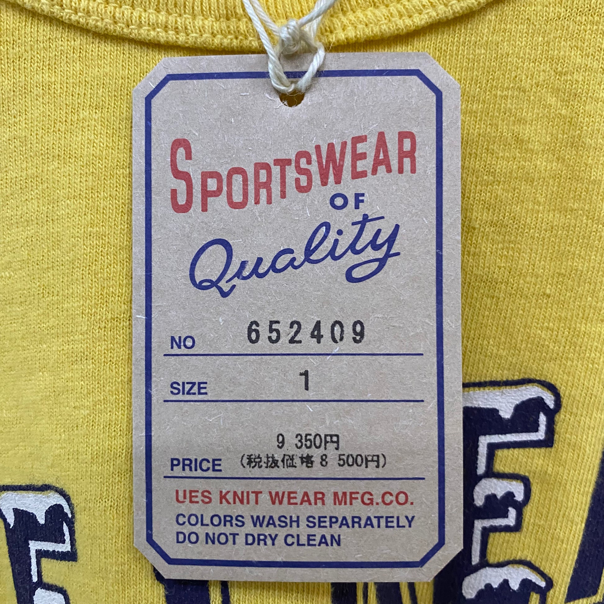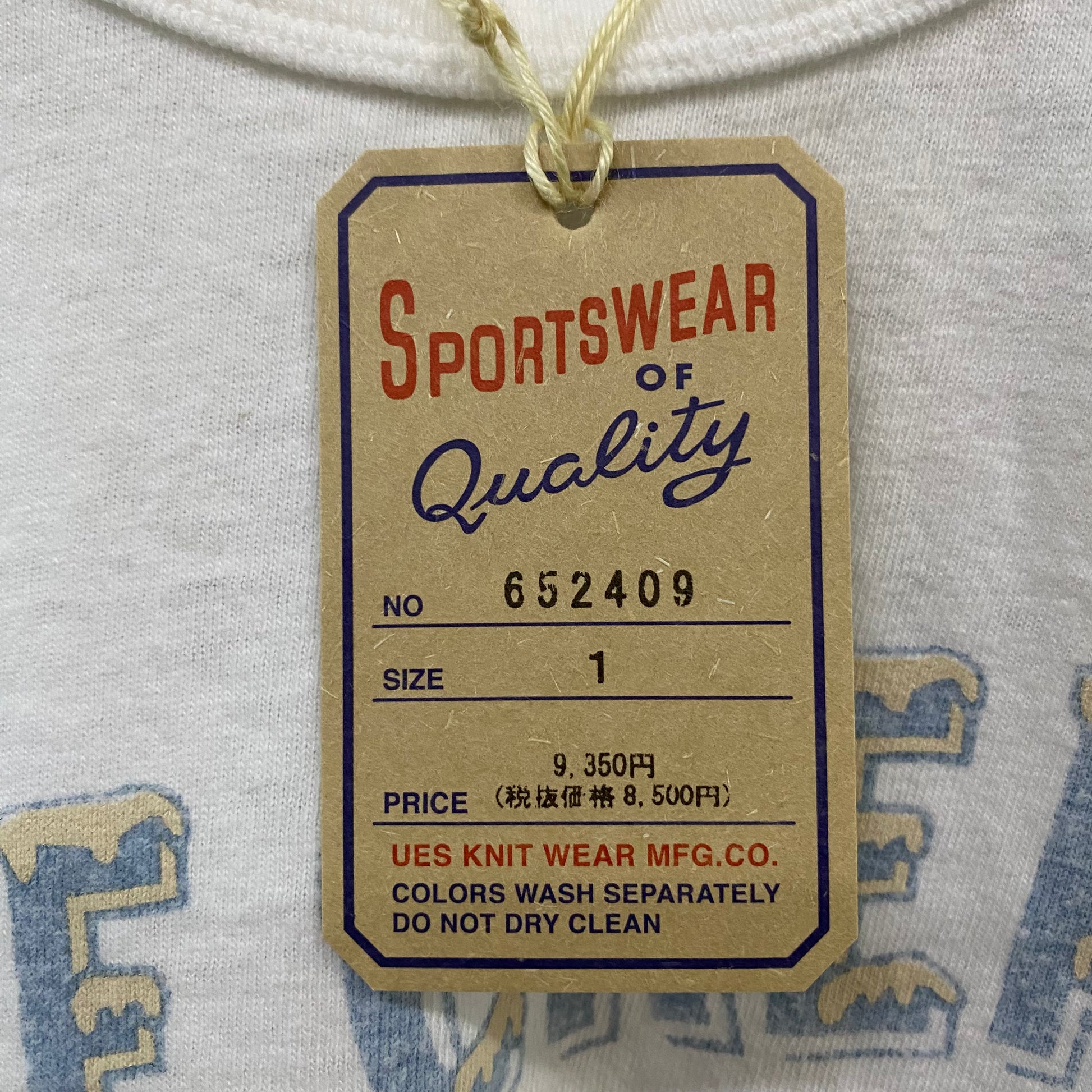 首まわりのリブの取り付けは、3つ折バインダー仕様としました。Tシャツは首周りが伸び切ってダメになることが多いですが、UESのTシャツは厚手のリブを25mm幅のバインダーネック仕様にすることで強度を確保しています。